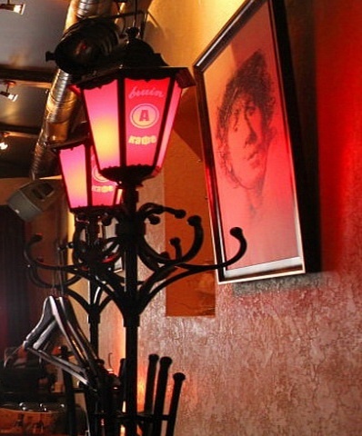 Будешь тут грустной – зима, а ты в купальнике… Ресторанчик оказался стильным и очень уютным. На стенах – улочки Амстердама, своеобразно оформленное меню, а рядом надпись «Гашиша НЕТ!», зажженный камин, ненавязчивая музыка и немое кино с Чарли Чаплиным…