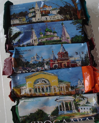 Снаружи все выглядит строго, а вот внутри… Словно попадаешь в пряничный домик, наполненный всякими вкусностями. Ароматы шоколада, ванили, корицы, карамели…- весь букет просто не перечислить – кружат голову, и невозможно отказаться от чашечки кофе с восхитительным десертом. А еще здесь продавались конфеты с видами Ярославля, воспроизведенными с живописных работ молодого ярославского художника Михаила Шиханова-Кублицкого, частная галерея которого располагалась по соседству с кофейней. Замечательный сувенир для родных и друзей, тем более конфеты были вкусными, с разнообразными начинками.