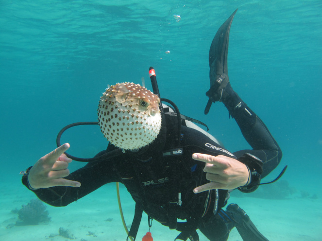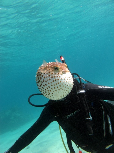 Надо сказать что надувается рыбка не для развлечения туристов, решивших осуществить свое первое в жизни погружение, а для защиты, отпугивая других рыб и надоедливых дайверов)), заглатывая воду.