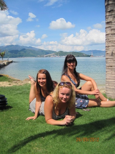 Наконец-то выкроила время написать отчет о сентябрьском рекламном туре во Вьетнам, осуществленный нашей постоянной троицей подруг. Летели из Новосибирска, на Боинге 767, с часовой посадкой в Дананге, до аэропорта Камрань. Если бы не посадка, то было бы меньше 7 часов полета. Но, что поделать, часть пассажиров выходила в Дананге, и ехала отдыхать на тамошние курорты, а мы должны были лететь дальше. Долетели хорошо, кормили раза 3, видимо, чтоб не возмущались пассажиры))).