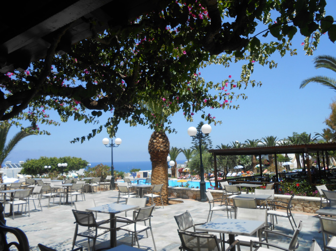 Ну вот, про отель, пожалуй, и всё. Подведу итог: молодежи здесь будет скучно, до Херсониса, где основные «развлекухи» ехать недалеко, но в самом отеле ничего особенного нет. Для семей с детьми отель вполне подходит, всё прилично, спокойно, в 24 часа, когда заканчивается система всё включено, все дружно ползут спать, и я тоже так делала, почти как пансионат! Моя коллега часто ездили гулять в Херсонис со своей подругой, потом рассказывала мне очень красочно про свои ночные приключения, и я как будто тоже погуляла… Территория отеля красивая и ухоженная, на ресепшене понимают по-русски, детям здесь интересно, кормят хорошо, вид на море и пляж недалеко. Рекомендую семьям с детьми, людям преклонного возраста и любителям спокойного размеренного пляжного отдыха.