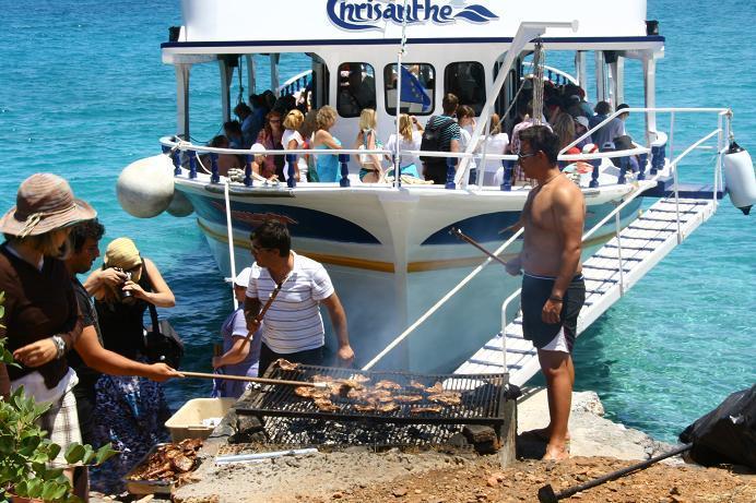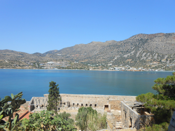 Про экскурсию на остров Спиналонга. Сначала мы поехали в порт, оттуда на кораблике поплыли на сам остров Спиналонга. Экскурию купили в Херсонисе в компании Fivos Travel. Познакомились там с чудесной гречанкой Магдой – она там работает, мой Саша познакомился с ее дочкой, она всех угощала и играла с ним, пока мы выбирали себе маршруты. А муж Магды с дочкой потом увезли нас в отель, мы очень обрадовались, потому что после шопинга в Херсонисе, у нас не оставалось денег даже на такси. Забрали нас на экскурсию в отеле и обратно в отель привезли, были руско- и англо/немецко-говорящие гиды. По дороге на остров гид рассказала нам интересную историю про остров Спиналонга, который был островом прокаженных, больных проказой, а сейчас музей. На острове мы побродили по развалинам, пофотографировались и через 40 минут отплыли. Потом приплыли в бухту, где мы купались в Эгейском море, загорали на песчаном пляже, а команда корабля готовила нам барбекю: мясо на косточке, греческий салат и напиток. Не понравилось загорать в бухте, пляж очень маленький, народу очень много, даже ступить негде. Надо прыгать с корабля и уплывать. Больше всего мне из этой экскурсии понравилось то, что я искупалась в Эгейском море, на котором я раньше не была, ведь там, где наш отель – Средиземное море. Потом мы поехали в город Агиос Николаус, там поднялись на смотровую площадку, снова сделали фото. Город очень красивый, расположен в бухте. Есть пресное озеро, которое искусственным каналом соединено с морем. Этой задумки я не очень поняла, ведь пресная вода на побережье – дефицит. Но наш гид сказал, что это сделали по той причине, что озеро было слишком загрязнено. Потом уставшие, но в целом довольные своей «вылазкой», мы поехали в отель.