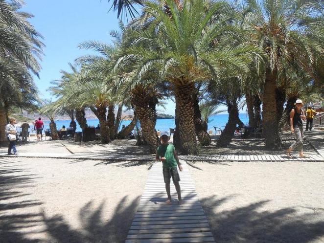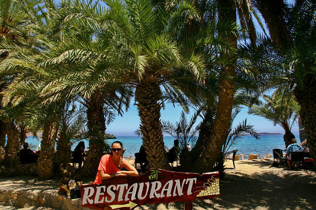 Про пальмовую рощу Вай. Экскурсию брали в той же компании, уехали утром из отеля. Дорога была долгая, на автобусе. Сначала мы завезли в порт группу, которая следовала на остров Хриси – необитаемый остров, где туристы могут почувствовать себя Робинзонами. Там очень красивый золотой песочек, ракушки и прекрасная природа. На острове нет даже кафе, хотя скоро, к разгару туристического сезона, они там появятся. Потом поехали дальше, по пути заехали в Женский монастырь, где поставили свечки, прочитали молитвы, сделали фото и купили мёд и вино. И снова в дорогу до пальмовой рощи. Вай мне понравилась, там очень много натурально выросших пальм, мелкий песочек и Эгейское море. Есть кафе и ресторан с шикарным видом. Я уплыла далеко от берега, подплыла к какому-то небольшому острову, но не рискнула войти, побоялась ежей и острых камней. Наплавалась вдоволь. Мой ребенок познакомился с итальянской компанией и играл с ними, а Юля загорала на горячем песочке. Были мы там примерно 3 часа, потом снова в путь. Дорога утомительной не была, так как наш гид Елена всё время рассказывала историю Крита и разные легенды.