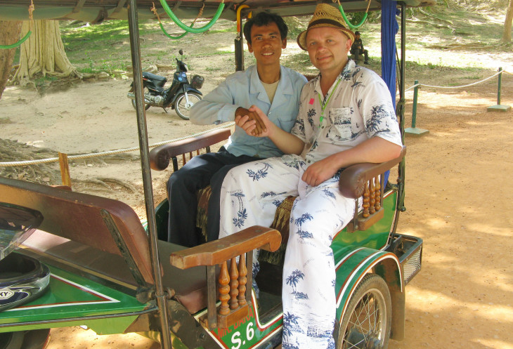 9.) Отдых «дикарём» может дать порой совершенно неожиданную экономию. Перед двухдневными экскурсиями я перешел в дешевый отель, что бы не тратить лишние деньги. Но один мой попутчик, его звали Батур, он из Бурятии, поступил круче. Он вообще рассчитался в отеле и вышел к экскурсионному минибасу с чемоданом. Он был один такой, поэтому места сзади было много. Вынул чемодан только при заселении в отель на Квае. 2 дня река Квай+2 Дня Камбоджа. Экономия составила 4 дня стоимости отеля.! Кстати, на фотографии на слоне это я с ним. Батур! Буду рад, если ты откликнешься!