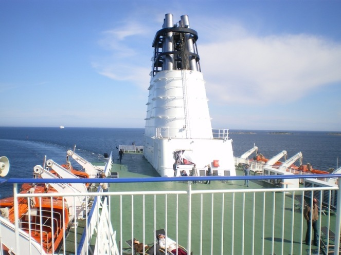 Ну что ж, вот мы и отплываем, все вышли на палубу и провожают виды Петербурга, вот уже и порт грузовой проплыли, доки, а скоро и Кронштадт с фортами и вышли на «Большую Воду». А тут уже и время подоспело, чем заняться: конечно – открылся ДётиФри- и все ринулись опустошать полки с косметикой, парфюмом, сладостями, и конечно же, кто бы сомневался, с Алкогольными Напитками- и выбор хорош, и цена уж очень глаз радует и кошелек, а потом уж и умы. Думаю, не стоит говорить, что перманентное нахождение людей в данном месте сопровождало всю поездку, за исключением, когда закрыт был магазин во время стоянок…как говорится- не зарастет народная тропа :)