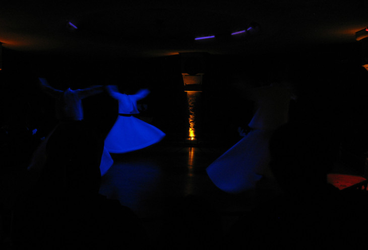 После едем в город Ортахисар, там идем смотреть танцы дервишей по 25 долл с человека. Дервиши в течение 20 минут под медитативную музыку крутятся на одном месте и впадают в транс, каждая часть музыки и танца имеет определенный смысл, о котором можно прочитать в программке (лежит у входа).