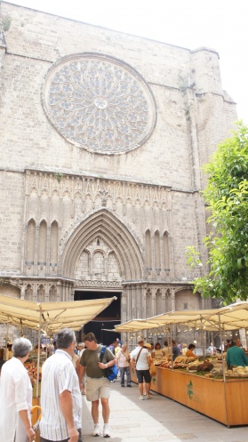 И так, Барселона. Как я уже говорила – день был не жаркий, что оказалось большим плюсом для прогулки по городу. Маршрут стандартный: Площадь Каталунии, Ла-Рамбла, рынок Бокерия (но воскресенье и он закрыт), готический квартал, еврейский квартал (возле церкви Санта-Мария-Дель-Пи в уличном кафе очень вкусный кофе с выпечкой), Бульвар Грасии.