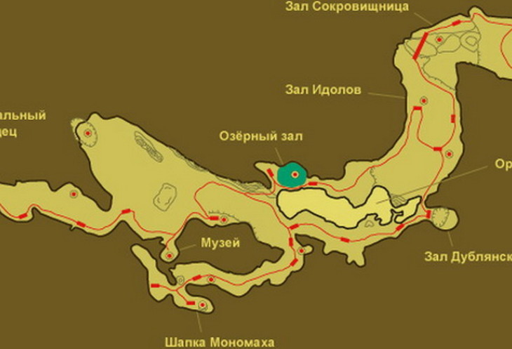 Залы самого верхнего уровня находятся примерно в 30 метрах от поверхности, нижнего – на глубине 180!