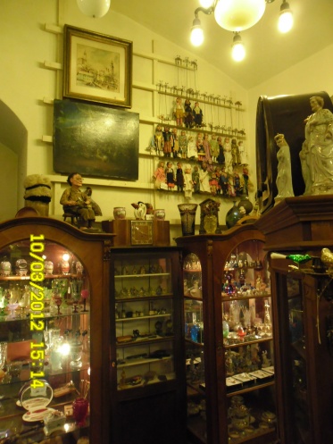 Зашла в причудливый антикварный магазин. В магазине было очень холодно. Совсем не топлено. Чувствовалось присутствие средневековья. Хозяйка, очень экстравагантная пани, уже «глубоко в годах», но выглядела потрясающе. В обтягивающих брючках, ботфортах, яркий макияж и с сигаретой. Плохо понимала по русски. Я постеснялась ее сфотать. В своем магазинчике она продавала милые сердцу безделушки: куколки, вазочки, картины и даже картину с изображением Ильича.