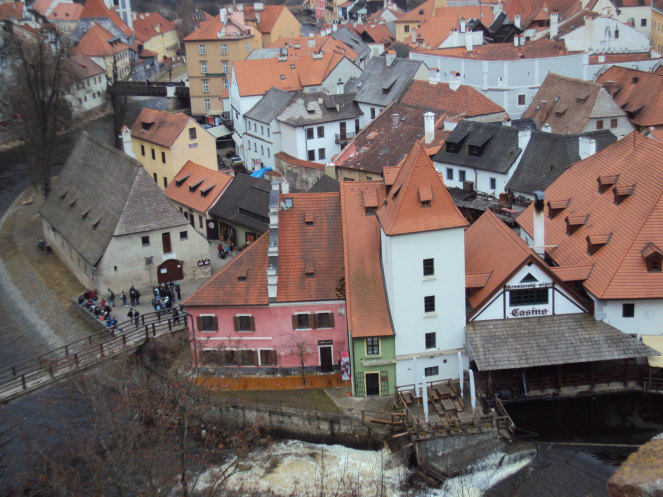 С высоты замка открывается панорама сказочного Крумлова, куда мы сейчас пойдем.