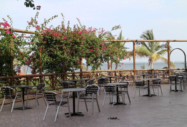 мы быстренько сходили в ресторанчик с видом на море, потому что...ну уж больно кушать захотелось после дороги и купанья...