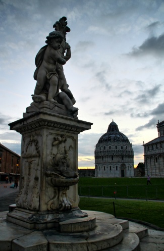 Однако в Пизу мы все равно приехали позже, чем хотели, к началу сумерек, но зато туристов оставалось на площади чудес единицы, и мы смогли насладиться красотой архитектуры в спокойной обстановке, жаль только внутрь было не попасть…