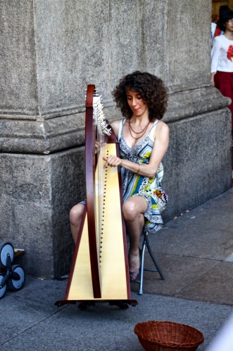 Потом прошлись по Галерее, и ближе к площади della Scala услышали музыку, то была арфа, руки девушки (весьма артистичной) мягко касались струн, извлекая из них душевные звуки.