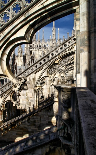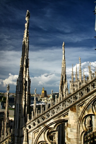 Потом мы отправились преодолевать следующую пару сотен ступеней, и как и в прошлый раз они того стоили. Побродили по крыше собора, посмотрели на Милан под другим углом.