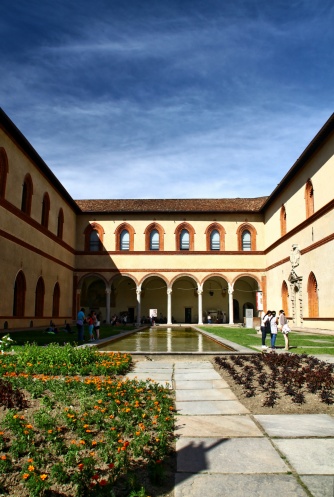 Затем отправились в парк Семпионе, где на газончике расположилось множество людей – кто прячется от зноя в тени деревьев, а кто загорает. К тому же в это время здесь проходили детские соревнования по футболу, а может и еще чему, мы видели только футбол, поэтому было весьма многолюдно.