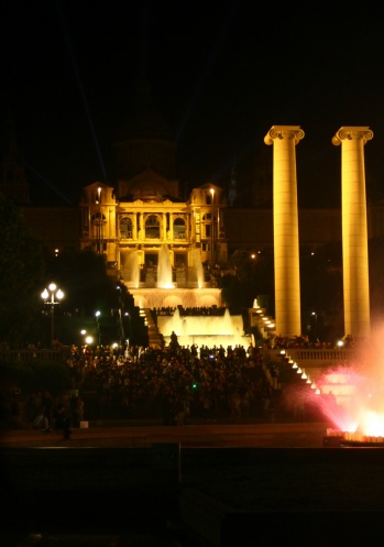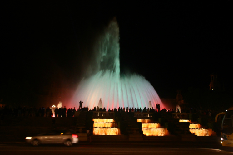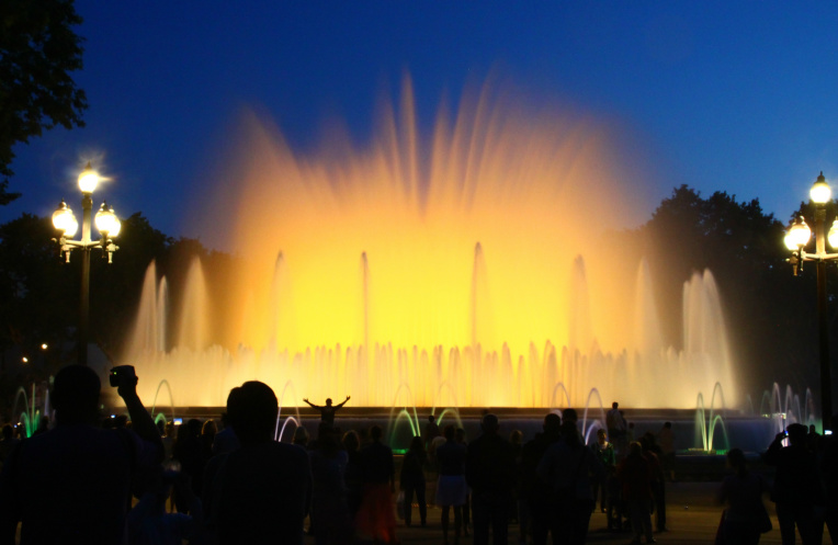 В прошлый раз проезжали мимо него множество раз, да и жили не далеко, но так и не пошли полюбоваться на бронзового толстяка! И эту ошибочку мы исправили, подергали толстяка за усы=). Вдоволь мы побродили по улицам города во время прогулки. Но нам пора возвращаться на Монжуик, любоваться (и слушать) пение фонтанов. И вот мы подходим к фонтану (точней видим его), как он начинает оживать, снова удивляемся, тому как все во время у нас получается.