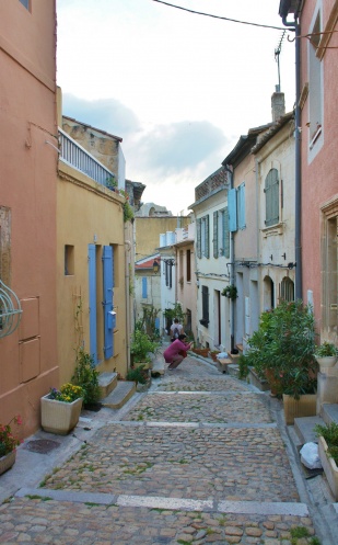 Прованс сейчас популярен. С этим сложно спорить. Реклама ароматов, дизайнерские решения,"Хороший год" с Раселом Кроуфом, книги Питера Мейла, популярная музыка. Конечно, хотелось ознакомиться с этим южным уголком Франции. Некоторые представления у меня уже имелись. Хотелось увидеть во всей красе цветущую лаванду и вообще почувствовать дух Прованса. Дело осталось за малым: решить, как бы это осуществить на практике. Все готовые туры не устраивали, но пришлось выбирать. Остановились на " Андорра и Краски Прованса" от Нововиры. В двух словах скажу о самом туре. Как оказалось, пользуется он очень малым спросом- организуется два раза в месяц. Нас набралось 12 человек, жаждущих Прованса. В принципе, всё было хорошо: знающий гид, хорошие гостиницы, маленькие нетяжёлые переезды, вкусная еда. Передвигались на маленьком автобусе, у каждого было "своё" окно, французские песенные хиты поднимали настроение. Но! Холодное лето 2013 года внесло свои коррективы в наши планы. Ещё до отъезда, я поняла, что никаких цветущих лавандовых полей нам не видать. На месяц всё запаздывало в природе... Решили не расстраиваться, будь, что будет! Ромен Ролан сказал: "Франция романтична потому, что у неё есть Прованс". Больше двух месяцев прошло, как я вернулась из тура. И только сейчас я начинаю понимать, что мне запомнилось и полюбилось больше всего. В Провансе мы должны были жить в Авиньоне. Но ввиду подготовки к летним фестивалям мы оказались в г. Арль. Городок типа наших райцентров (40 тыс. жителей). Гостиница на окраине. Каждый вечер мы проводили в городке. Выходили из отеля и шли сначала вот такой дорогой.