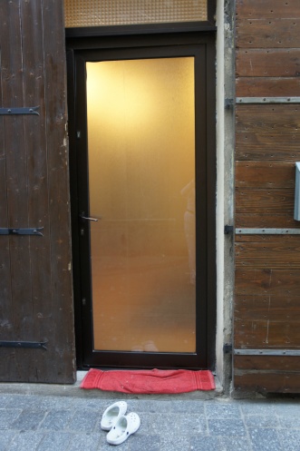 Возвращались мы домой тёмными улочками, где не было ни души. О жителях напоминали лишь вот такие картинки. Согласитель, что не в каждом нашем провинциальном городке в дом с улицы заходят так.
