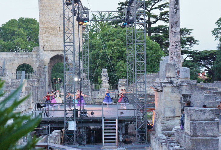 Каждый июль в Арле проходит театральный фестиваль. Вечерами можно было наблюдать за репетициями артистов балета на античной сцене.