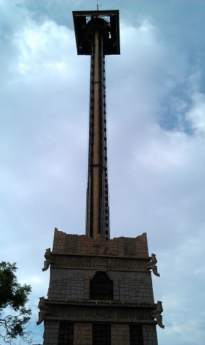 Она же "Яйца к горлу". Пока нас поднимали на высоту 100 метров было достаточно забавно. С вершины аттракциона взору открывается прекрасный вид на сам парк, окрестности, замечательный пейзаж от которого дух захватывает, ты улыбаешься фотокамере и машешь рукой, пытаясь крикнуть о том, как ты всех любишь и как тебе прекрасно на душе. Потом шестым чувством ощущаешь, что что-то где-то обрывается, мгновенное ощущение что из-под козырька стеллы Кондора тебе хитро подмигивает северный серебристый лис, который не толстый, а который полный и уууууууууууууууууууууууууууууууууууууууууууууууууууууууууууффффффффффф. Очнувшись на земле чувствуешь, что парашютная подготовка, пройденная в 11 классе средней школы не забыта за 22 прошедших с момента крайнего "шага в небо" года. Колени крепко сжаты, стопы вместе, руки намертво вцепились в стропы (точнее казалось, что намертво, Шамбала была впереди). Уххххх - вроде живой. Доча рядом. В её глазах смесь дикого восторга с лёгким вопросительным налётом "Что это только что было?". Догадываюсь что сам выгляжу примерно также.