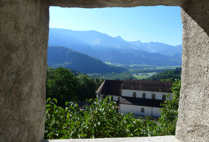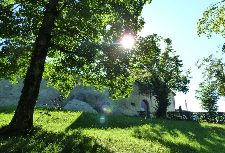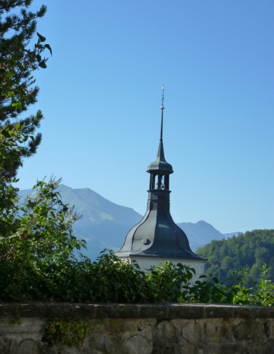 Интерьер маленькой капеллы украшен изящными витражами, на которых изображены гербы графов Грюйеров. Я даже забыла их сфотографировать, настолько хорошо и спокойно стало на душе.
