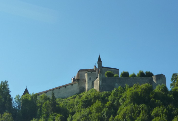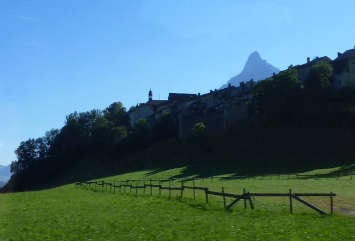 В мыслях о средневековом Шильоне я рассеянно смотрела на зелень за окном и чуть не пропустила замок на скале, а ведь это не менее значимый для Швейцарии Грюйер.