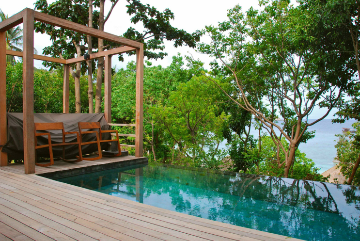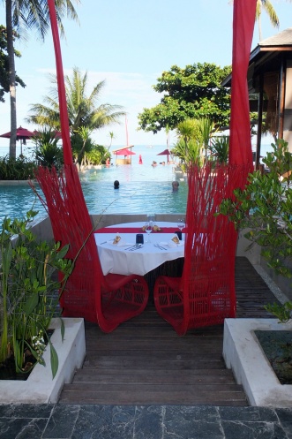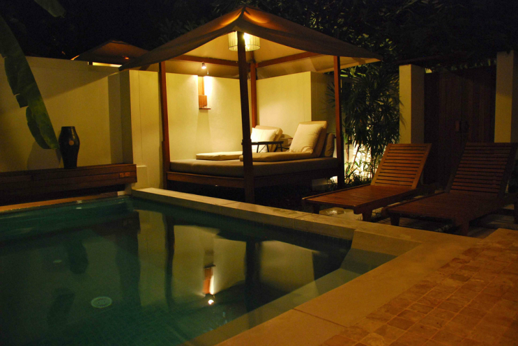 Каждый номер – отдельная вилла или сьют с собственным бассейном. Номеров без собственного бассейна просто нет, извините. У самого «маленького» номера общая площадь 100 кв. метров. Чувствуешь себя как бы на собственной шикарной даче, где есть личное пространство, свой дворик. Мы брали номер Lagoon Pool Villa, у него помимо всего прочего еще есть лагуна – такой прудик с карпами, так что ощущение дачи стопроцентное :)