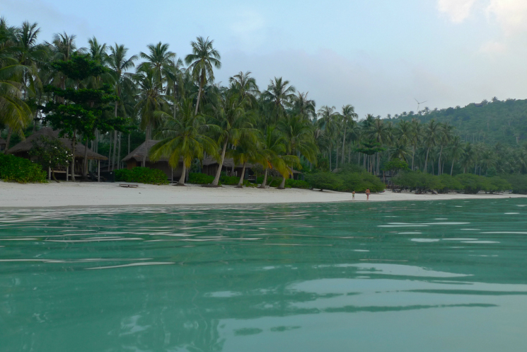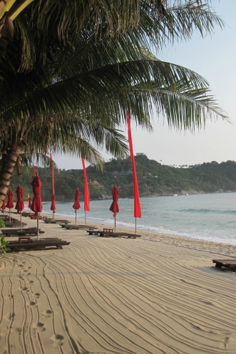 Мы решили остановиться на пляже Тонг Най Пан Ной, который оптимален по нескольким причинам. Во-первых, достаточно удален от тусовок, но в то же время здесь есть деревенька с необходимым количеством кафешек, ресторанов, несколькими маленькими магазинами. Во-вторых, бухта действительно красивая и уютная – широкая, с каменными косами по краям и изумительным белым песком и совершенно ласковым морем. Ну и последний аргумент – на этом пляже расположен один из лучших отелей острова Anantara Rasananda Resort. Хотя, почему «один из»? Лучше-то и нет. Если вы любите комфорт и сервис – вариант идеальный. Если не любите или у вас (вдруг) нет достаточного количества денег, на этом пляже есть совсем бюджетненькие отельчики. Симпатично выглядит снаружи, например Thongtapan Resort, расположенный на самой левой оконечности пляжа.