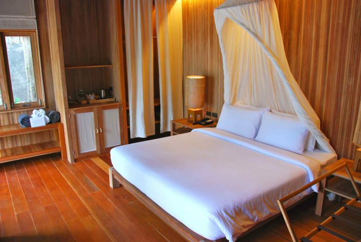 Наш отель Haad Tien Beach Resort – это пара десятков вилл разных категорий, от более-менее недорогих, подальше от пляжа, до больших прямо у берега, с двумя спальнями и личным бассейном. Внутри все обделано деревом разных пород – «натур продукт» в чистом виде, но без живности. Ощущение какого-то природного комфорта и единения. У отеля просто огромная территория, настоящие джунгли, что редкость для Таиланда. И чувствуется постоянное, но ненавязчивое внимание персонала. Даже сам менеджер отеля, чудесный парень Джон, находился почти всегда в зоне видимости и лично интересовался, все ли у нас в порядке и не нужна ли нам какая-нибудь помощь. Если у кого проблемы с английским, на ресепшне работает русская девушка Наталья, отзывчивая и веселая, поможет по любому вопросу.