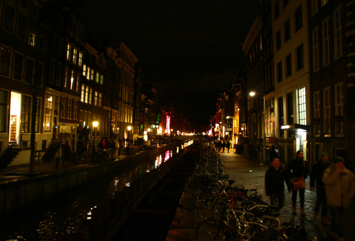 Позже во время вечерней прогулки и поедания огромных вафель на ярмарке, которая тянется от Главного вокзала до площади дам, мы отправились прогуляться по кварталу красных фонарей, ночью он конечно очень преобразуется. Каких тут только нет девушек…на любой вкус и цвет, чем многие и пользуются. Правда-правда, никто не останется обделен, есть даже шокирующие особи… кто чем шокирует, кто объемами, кто просто своим видом, но красоток предостаточно. Мне как любителю все «щелкать», очень тяжело было удержать себя и оставить фотоаппарат выключенным в этом месте, рискнуть можно было... Но не хотелось мне привлекать к себе внимание девушек за окном, они и так показывали one finger, если ты вдруг на нее засмотрелась. А с некторыми мы были в абсолютно разных весовых категориях, что могло для меня плачевно закончится.