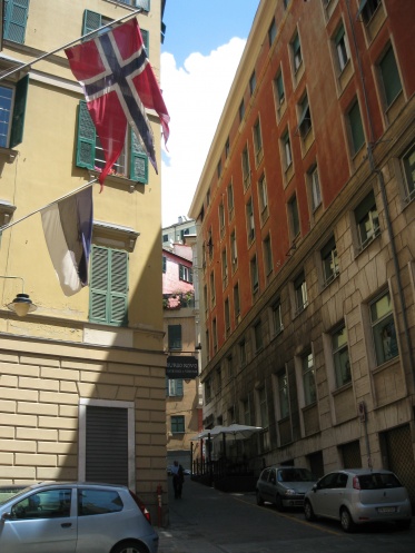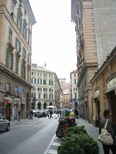 В Геную летели из Мюнхена всего около часа самолетом местной авиакомпании Air Dolomiti (партнер Люфтганзы). Добраться из аэропорта до гостиницы было нетрудно. За 6 евро купили билет на автобус до вокзала Принчипе, возле которого я предусмотрительно забронировала гостиницу. Поэтому найти ее было легко: выбравшись из недр вокзала, прошли по улице метров 150. Гостиничка была простая и незатейливая, номер тоже: чистая комната с санузлом и "французским окном", которое открывается до пола. Чтобы три дня пожить в Генуе, а потом поехать на море, этого было более чем достаточно.