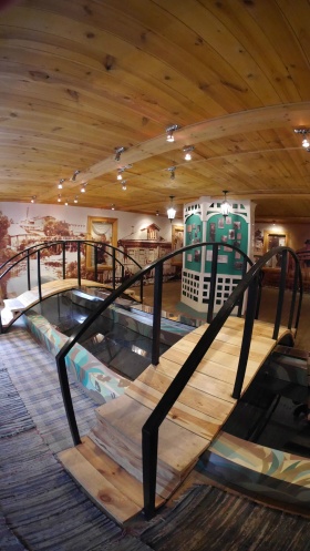 Музей Цветаевых, Марины и Анастасии, «не предметен», там нет подстекольных собраний всяких безделушек, принадлежавших сестрам. Он метафоричен и оригинален. Репринт фотографий домов Александрова 16-17 годов прошлого столетия и резные рамы, символом дружеских теплых окон.
