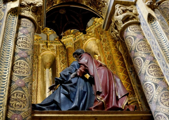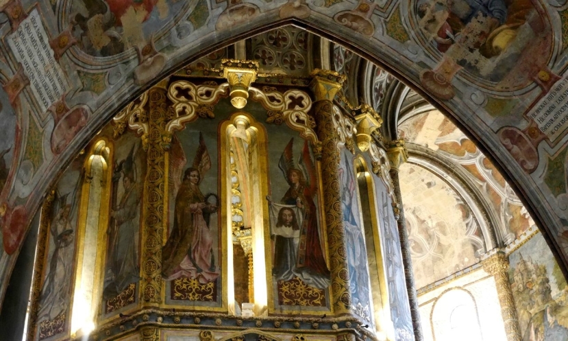 Одна из главных достопримечательностей замка тамплиеров– церковный неф с растительными и символьными элементами орнамента и совершенно фантастическое окно, в котором нашлось место чуть ли не всем символам мануэлино. Лицо стиля, его флаг и гордость. Говорят, что Англия была готова простить весь внешний долг Португалии за право владеть этим окном, потому что в его кружеве зашифровано послание тамплиеров о Чаше Грааля.