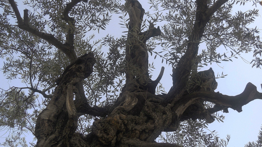 Гефсиманский сад. Хотелось бы услышать хоть отголоски тех бесед. Оливы старые, узловатые стволы. Их уже не так много, остатки.