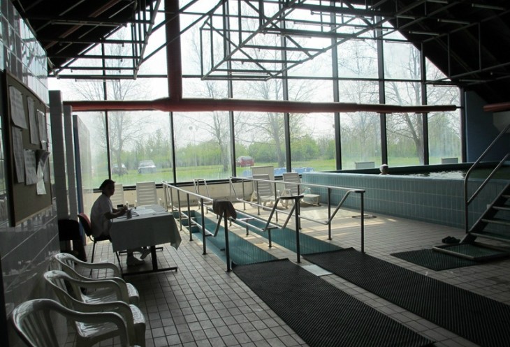 День мой почти целиком был занят процедурами, массажами и занятиями в бассейне. Бассейн с минеральной водой работает каждый день до 21.00, по четвергам закрыт на обработку. В бассейне проводятся групповые занятия , рядом расположено отделение , где делают гидропроцедуры.