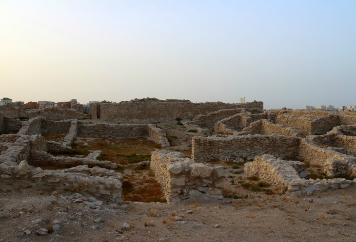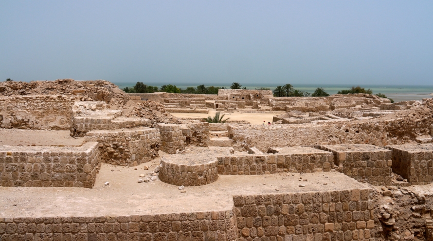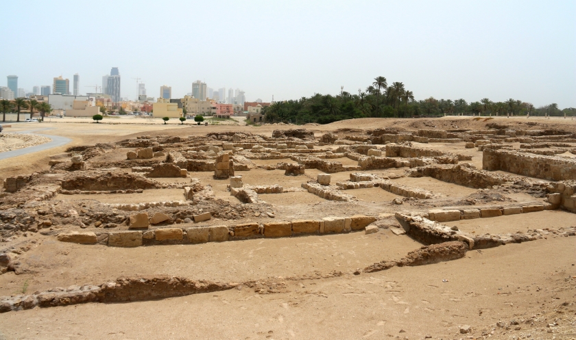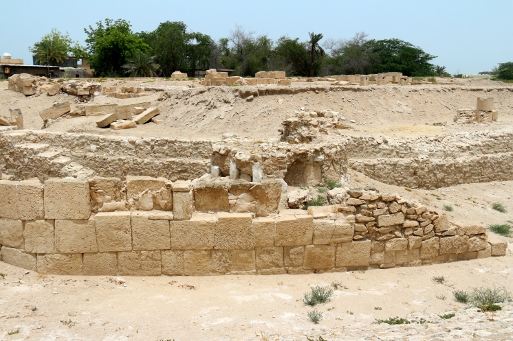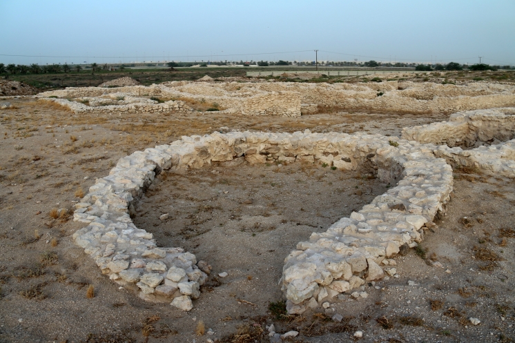 Усталость испарилась! Камера была заряжена новой батарейкой, а мы - новым приливом бодрости. Нас ждало другое уникальное историческое место, над раскопками которого трудились сначала сами бахрейнцы, потом иорданцы, потом англичане - до 1999 года продолжались работы в поселении Saar, датируемом 3-2 веком до нашей эры. Загадкой остается, почему люди внезапно покинули город с такой стройной инфраструктурой, четко распланированными домами, храмом (восстановлен), колодцами, дорогами, складами, отдельно расположенным кладбищем. По раскопкам было понятно, что здесь жили, в основном, рыбаки и добытчики жемчуга (при раскопках даже найдены мелкие жемчужины, вероятно отбракованные из-за весьма небольшого размера) и никаких оборонительных сооружений найдено не было, хотя город находился у воды