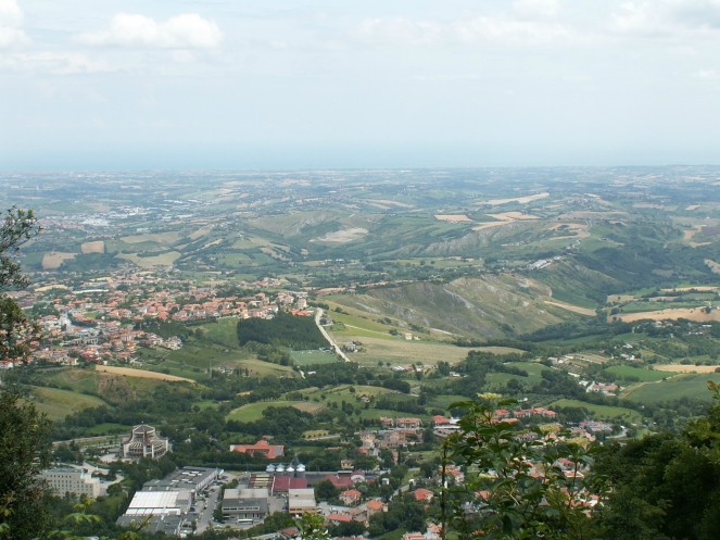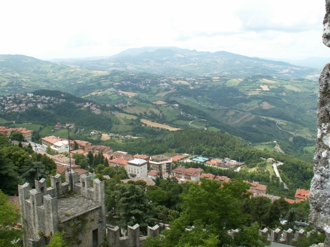 Минут через 35-40 мы доехали на автобусе до столицы Сан-Марино, уже с конечной станции открываются красивые виды на окресности.