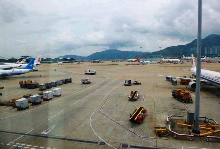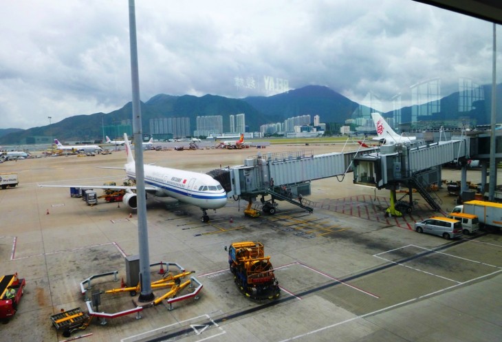 Посадка: вот тут, честно говоря, я вообще ничего не понял. Мы заранее, еще из дома, зарегистрировались на рейс из Пекина в Гонконг, багаж был зарегистрирован транзитом, но китайские товарищи почему-то очень долго совещались с кем-то по рации, на много раз просматривали наши багажные квитанции, при этом даже не пытаясь перейти в разговоре с нами на английский язык. Думаю, что выручили нас распечатанные листы online регистрации, посмотрев которые, товарищи связались с бортом самолета (или гонконгской авиакомпанией) и сразу допустили нас на посадку.