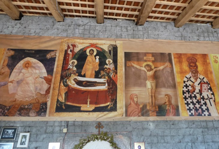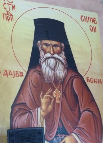 В монастыре все очень просто. На террасе у входа большие изображения известных святых и преподобного Симеона Дайбабского, конечно.