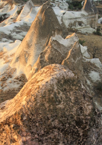 Тут я поняла две вещи: во-первых не фига не холодно, поскольку Вы стоите рядом с гигантской газовой горелкой, а во-вторых что эта конструкция как то управляется! Тут все затихли, поскольку уже светало и нам открылся удивительно-сказочный пейзаж, волшебной страны с дымоходами. К тому моменту мы еще не знали как сформировался потрясающий ландшафт Каппадокии и это еще больше удивляло и потрясало мое воображение.