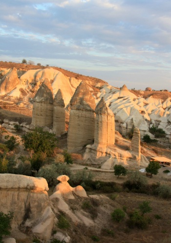 И вновь мы набрали высоту, где как на ладони красовался Гереме. Трудно сказать чего больше в этом городе отелей или жилищ местных жителей, но и те и другие выглядят как земляные пирамиды со множеством дырочек.