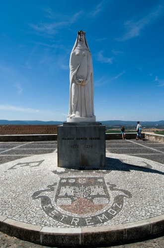 На центральной площади памятник Святой Изабелле Португальской, видимо очень мудрой и доброй женщине, которая смогла примерить здесь своего сына Афонсу IV с кастильским королем Альфонсом XI и избежать кровопролития. Вскоре после этого заболела и умерла.