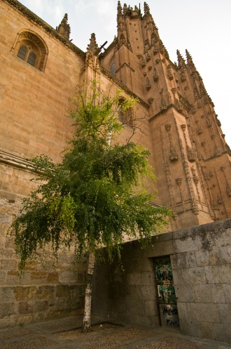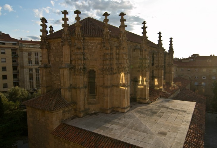 Въезжаем в Саламанку (Salamanca), быстро находим Le Petit Hotel (номер на семью 60 евро без завтрака) и пытаемся так же быстро заселиться. Но не тут то было. Портье нужно проводить нас до паркинга и мы дружно ждем его маму, чтобы она подменила его. Теряем где-то около 20 минут, но успеваем полюбоваться видом из окна - очень вовремя подоспели солненчные зайчики.