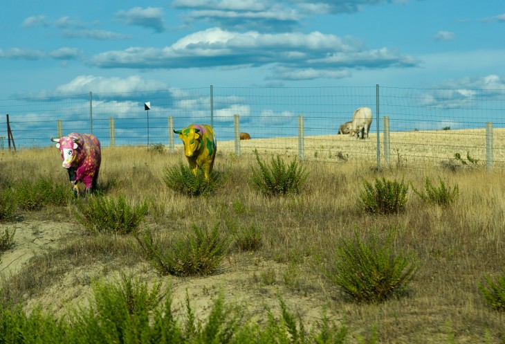 В этой части Испании с коровами несколько иначе чем в подмадридье. Нету вот этих некрасивых быков с яйцами. Зато есть нарядные цветные буренки (по крайней мере так хочется думать :) ).