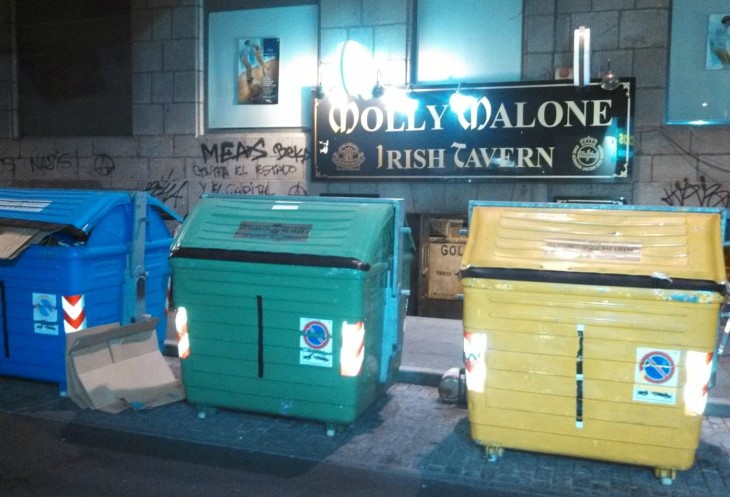 Очень может быть там много туристов, но почему-то все испанцы говорят только на испанском. Небольшое исключение - кафе на улицах. И те, кто говорит и те, кто не говорит по-английски одинаково ленивы. Сотрудница в кафе сидела на жопе ровно минуты две, пока я пытался достучаться до нее с просьбой объяснить как работает их блядский автомат по продаже сигарет. Она слушала, слышала, отвечала по-испански и продолжала сидеть на жопе! Ну ладно...
