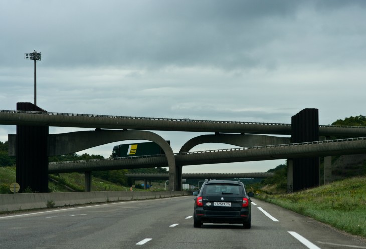 Отлично позавтракав, отправляемся в путь. Спасибо навигатору. Он снова увидел адовый затор из-за аварии и мы вместо того, чтобы выехать и тут же встать на девятую дорогу, делаем небольшой крюк. Едем абсолютно без приключений и значимых остановок. Дорога "рваная", очень много ремонтов, но за счет их грамотной организации и благодаря характерным особенностям немецкой нации, средняя скорость не падает ниже 110 км/ч. Вот после этого места