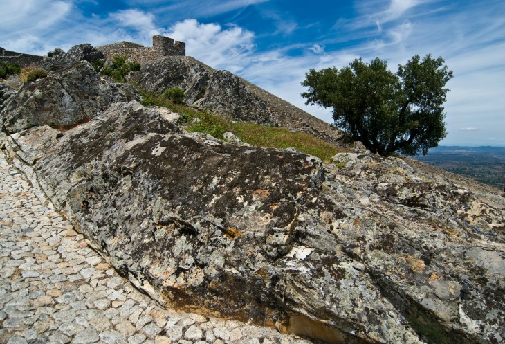 После Порталегре Саша куда-то сворачивает и мы едем по совсем уж узкой дорожке. Вдали на непонятно откуда вылезшей горе виднеется что-то похожее на крепость. Это Марвао (Marvao), весьма серьезный оплот, послуживший многим народам, начиная с кельиберийцев.