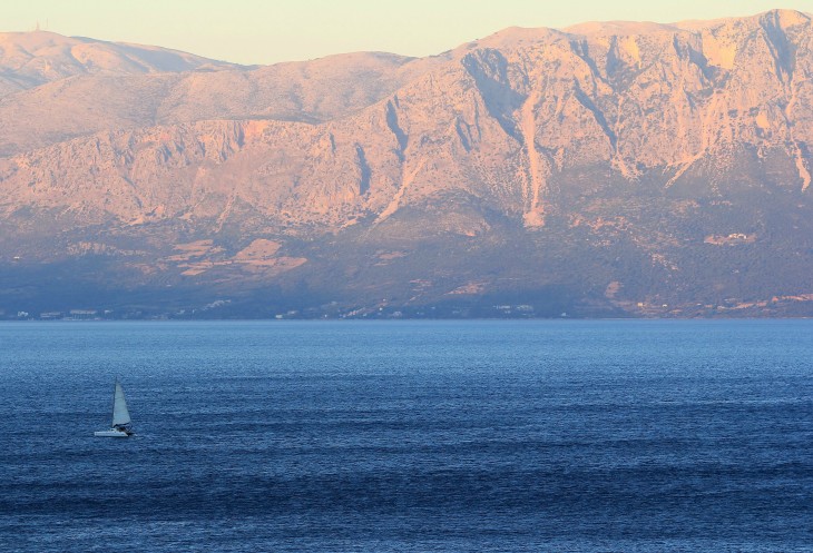 Вечер мы провели на нашем балконе, любуясь закатом на фоне высоких гор, темнеющим морем с белоснежными корабликами; откуда-то издалека лилась красивая греческая мелодия и я была абсолютно, до одурения счастлива!