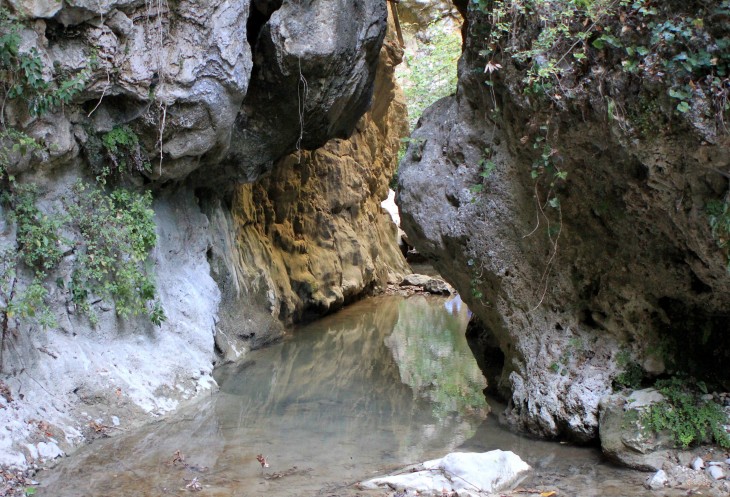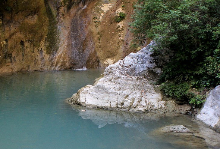 Тропа идет вверх по ущелью, которое постепенно сужается, и появляются сначала небольшие ручейки, потом маленькие водопады и озерца. Здесь очень приятно гулять, в тени деревьев, можно искупаться в небольшом озере.