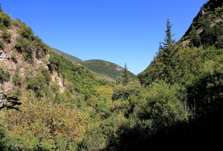 По обычаю «немножко обгорев», сделали перерыв в нашем пляжном отдыхе и отправились в самое прохладное местечко на острове – водопады Нидри. Находятся они прямо над поселком, в четырех километрах от моря. Везде вдоль дороги стоят указатели на «Waterfalls». Под огромным раскидистым платаном уютное кафе «Платанос» и стоянка для машин, а дальше начинается тропинка к водопадам.